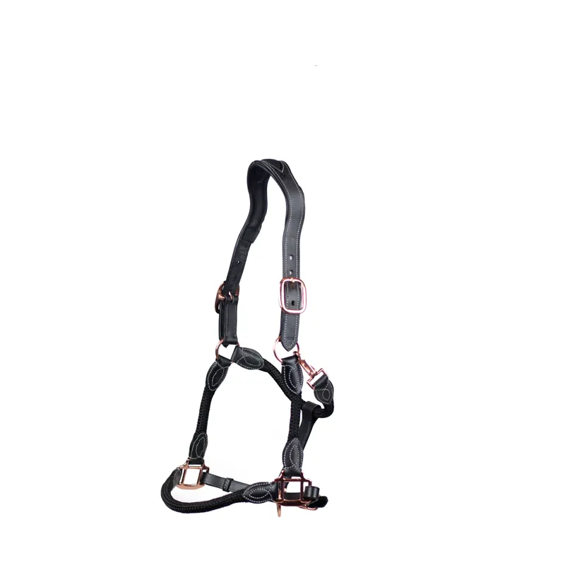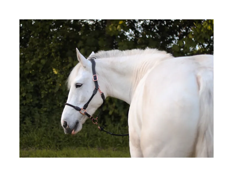 Designed for comfort and control, Cameo Anatomic leather headcollars are made using a strong yet soft rope to allow greater control with leather attachments onto attractive metal fittings. The fittings are chosen to compliment the colour of rope and leather. The Anatomic headpiece is soft and shaped with an ear cutaway to alleviate pressure from the nerve sensitive lower ear. Complete with a trigger hook for ease of use.