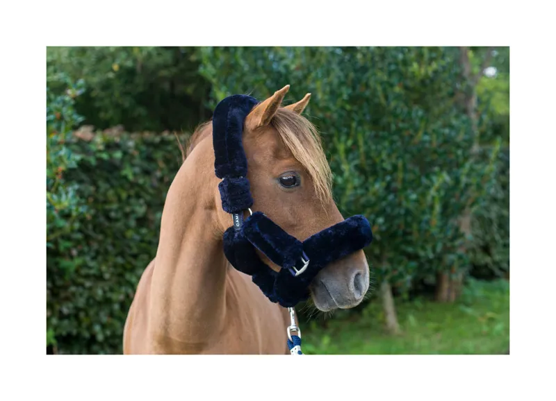 The ultimate in horse luxury. This headcollar is so soft it needs to be touched to be believed. The Cameo Deluxe headcollar has soft padded synthetic sheepskin on all sections making this the most comfortable headcollar a horse can wear.