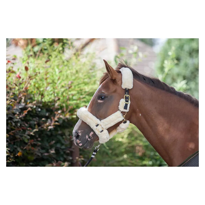 The ultimate in luxury. ecorider have developed an exclusive fur headcollar that uses the softest faux sheepskin. The ecorider Supreme headcollar is further enhanced by the finest brassed fittings and strong nylon web. With matching brass eyelets this headcollar is the epitome of luxurious comfort for you and your horse!