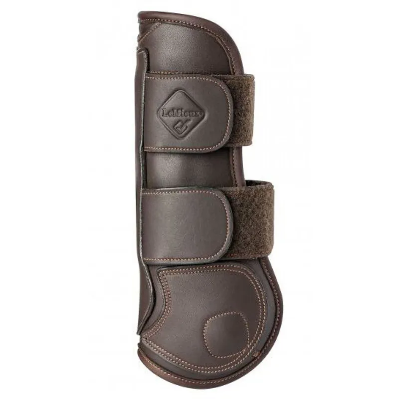 Classical style with cutting edge protection. These leather tendon boots are made from top-quality soft leather that moulds beautifully to the leg. The stitching detail defines the key anatomic sections whilst the soft contoured top is cut back to allow no restriction on the tendon when jumping. Designed with low friction EVA lining, these boots give style, performance and function. Double lock velcro straps ensure the perfect fit and adjustability.