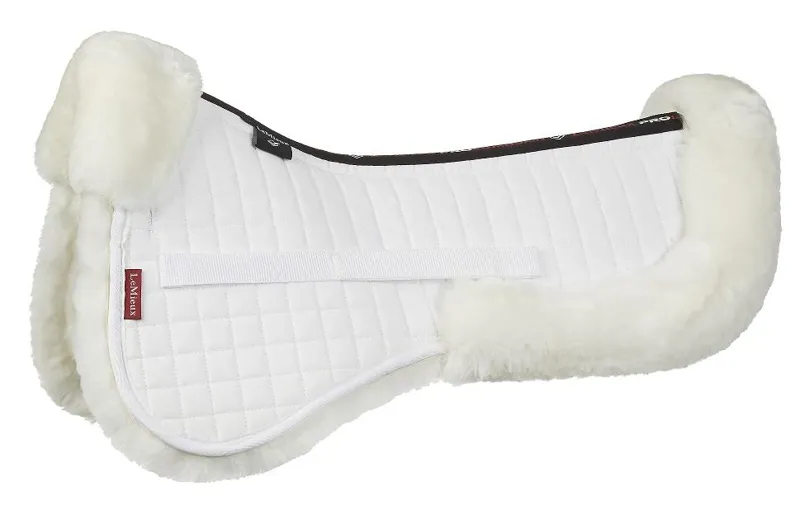 White Dressage Cut -The New straight cut Dressage Half Pad by LeMieux. Deeper straight cut front edge designed to accommodate and contour all dressage saddles.