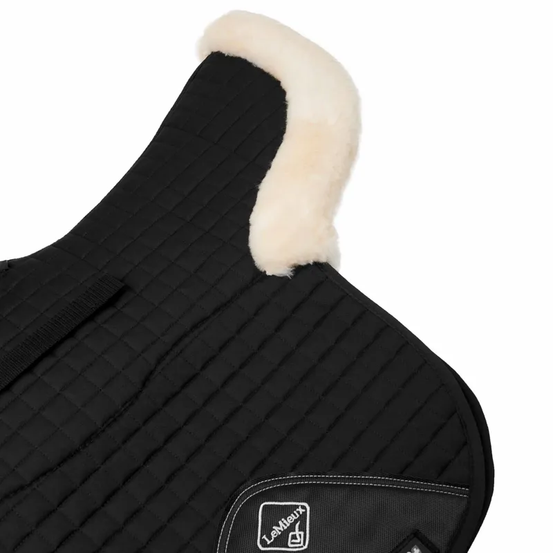 Beautiful lightweight cotton numnah that is half lined with the finest 100% natural Australian Woolmark accredited Merino Lambswool.