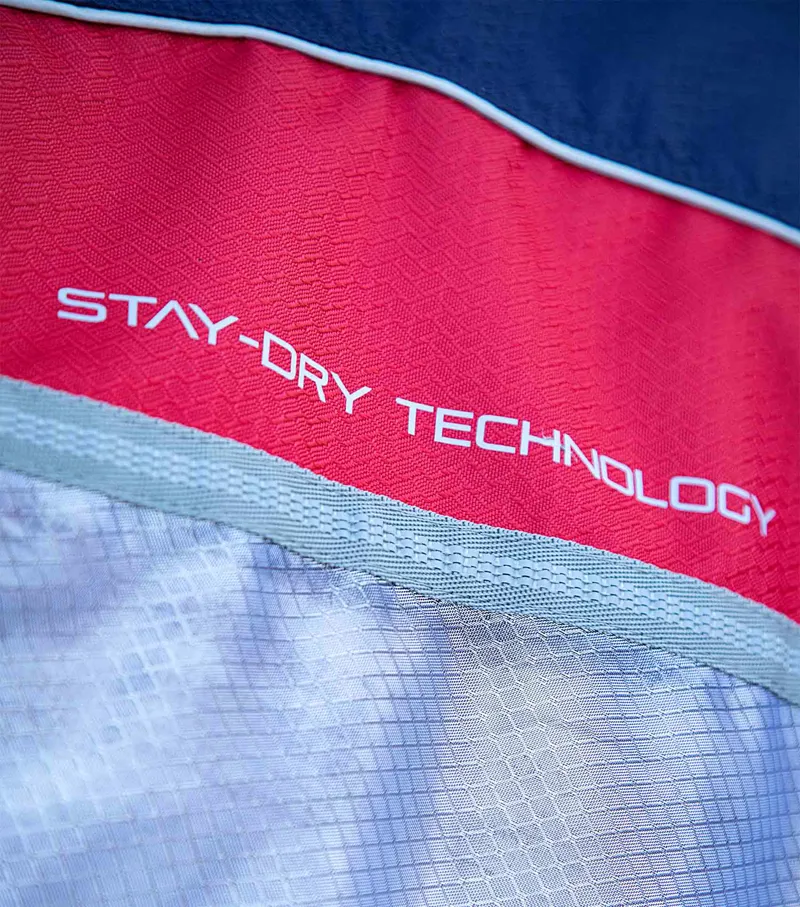 The Stay-Dry Super Lite Fly Rug combines contemporary styling with revolutionary super lightweight material. The upper section is made from a 600D ripstop waterproof and breathable material providing protection from rain showers. The lower section is made from 100% lightweight nylon approx. 70% UV reflective which offers incredible strength, durability and superior comfort designed to protect against flies and insects. This rug is the ideal choice for those summer days when the weather can’t quite make it’s mind up, rain showers one minute and sunshine the next and is perfect for those in-between days. It will help keep your horse dry from the showers whilst helping to prevent heat build up when the sun comes out. The perfect addition to any horse’s wardrobe. This technically advanced, unique fly rug is secured using quick-release chest clips and cross surcingles.