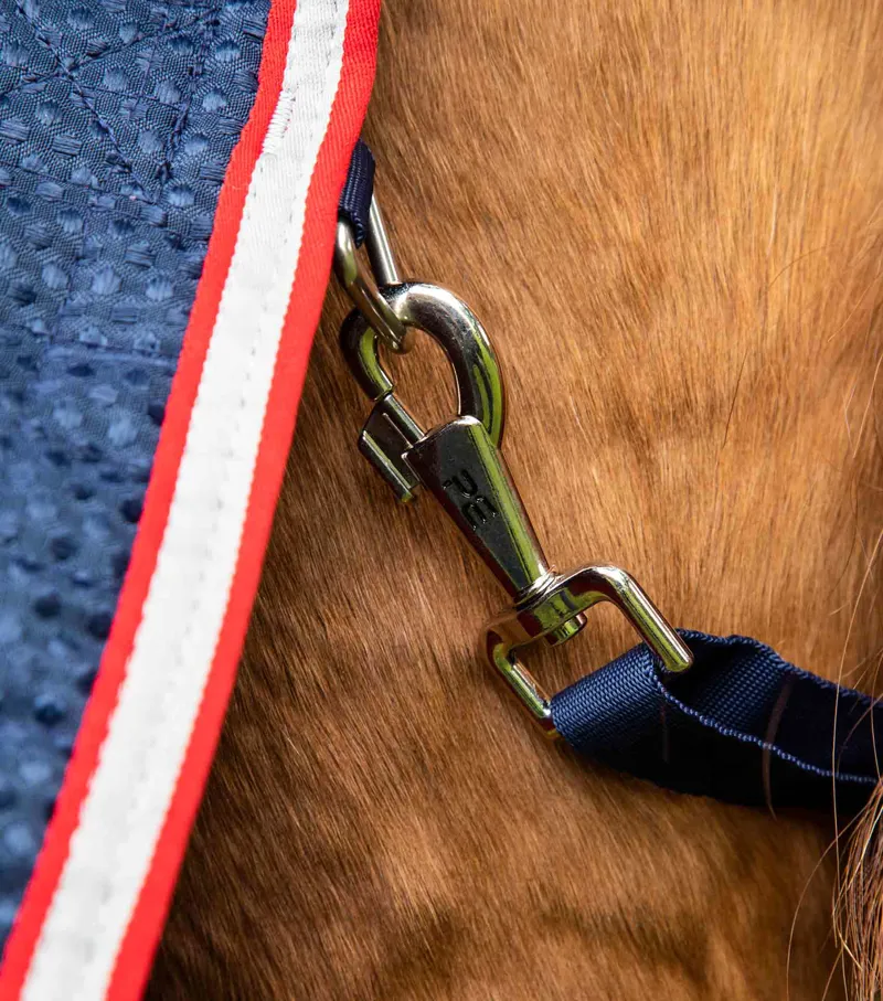 Combining innovation with tradition we have created a refined, top quality cooler that is suitable for a wide variety of uses. Constructed using three layers of technical fabrics, this rug is at the forefront of cooling technology. The lining is constructed using a lightweight waffle weave which is highly absorbent, durable and helps quickly wick away moisture from your horse’s coat. The middle layer contains a thermo bonded filling which is light, breathable and offers added protection from chills, it also helps draw and disperse moisture speeding up drying time. Our specially designed, quilted waffle weave outer provides a traditional, cosy aesthetic and helps prevent shavings from sticking to the surface of the rug when your horse is stabled. Complete with an integrated neck cover.