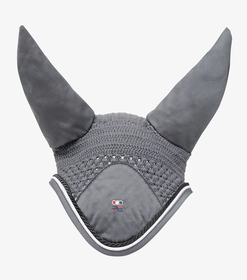 Premier Equine Fly Veils are ideal for keeping insects away from your horse’s ears and reducing noise, therefore increasing focus and concentration. Designed to match our exclusive range of Saddle Pads, providing you with a stylish look at home or at competitions. The soft fabric ear covering is comfortable for your horse, completed by our crochet pattern with contrast piping and ‘PE’ logo to the front.