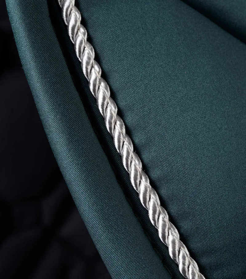 Complete with decorative twisted ropes which accent the outer edge of the saddle square, adding a touch of embellishment. Adjustable Velcro D loop straps and Velcro girth straps allow you to secure your saddle. One of thebest close contact GP / Jumpsquares for those who want to make a statement in the equestrian field.