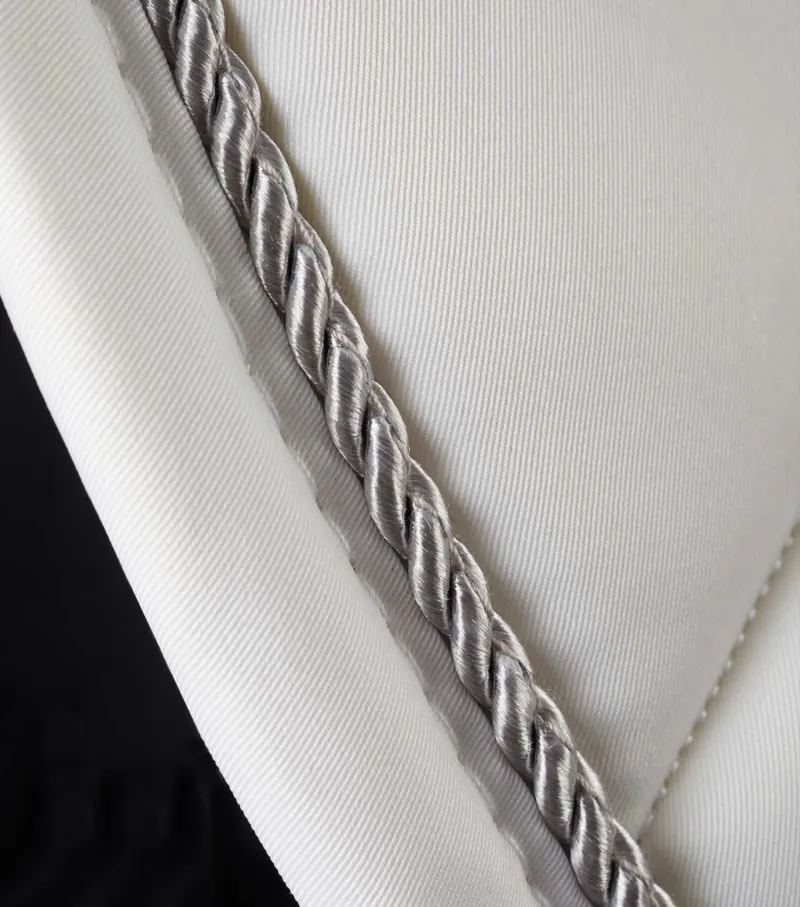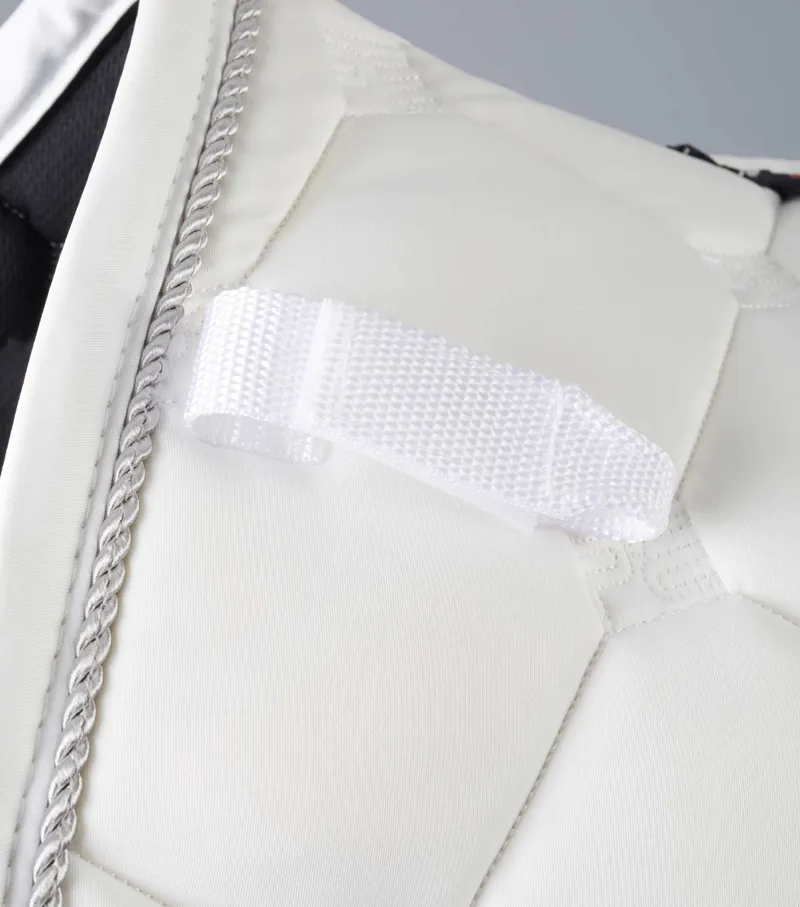 Complete with decorative twisted ropes which accent the outer edge of the saddle square, adding a touch of embellishment. Adjustable Velcro D loop straps and Velcro girth straps allow you to secure your saddle. One of thebest close contact GP / Jumpsquares for those who want to make a statement in the equestrian field.