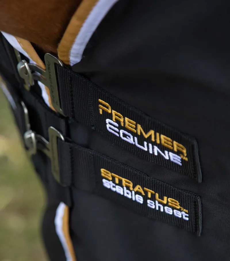 The technical polyester fabric of this horse cooler has a traditional cotton feel which effectively wicks away sweat and moisture from the horse’s coat, allowing excess heat to escape and helping to speed up drying time. An elegant ‘Stratus’ embroidery to the rear enhances the classic look and feel of this sheet.
