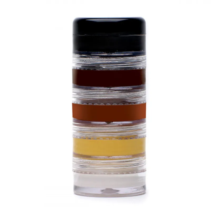 Stacking palette of 5 matt make up colours – black, dark brown, chestnut, palomino and white for blending and mixing when smaller quantities are required for coveruing marks, scars or stray coloured hairs.